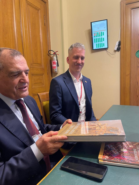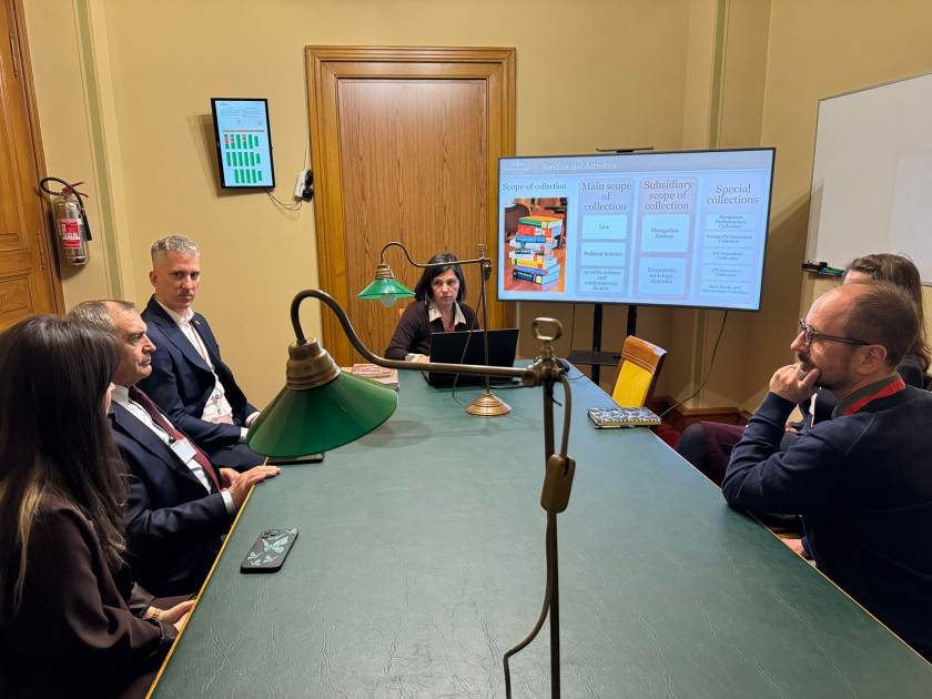 Daha sonra Macarıstan Parlament Kitabxanası ilə tanışlıq olub. Kitabxananın rəhbəri Szollas Peter bildirib ki, kitabxana Macarıstan Parlamenti binasının tərkibində fəaliyyət göstərir və ölkənin ən mühüm elmi-informasiya mərkəzlərindən biridir. Kitabxananın fondlarında hüquq, siyasət, tarix və ictimai elmlər üzrə zəngin ədəbiyyat toplanıb və tədqiqatçılar üçün geniş imkanlar yaradılıb.
