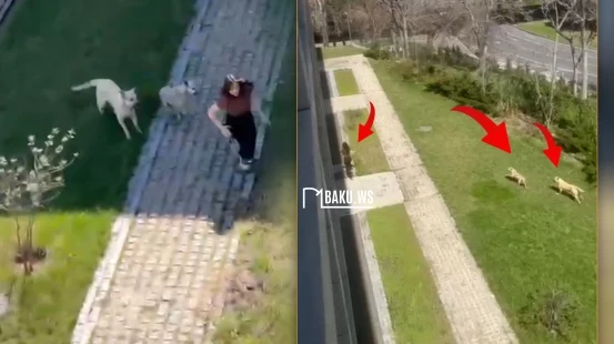 Yayılan görüntülərdən aydın olur ki, iki sahibsiz küçə iti qəfil şəkildə gənc qıza doğru qaçmağa başlayır. Gözlənilməz vəziyyətlə üzləşən tələbə çevik davranaraq hadisə yerindən uzaqlaşa və mümkün hücumdan xilas ola bilir.