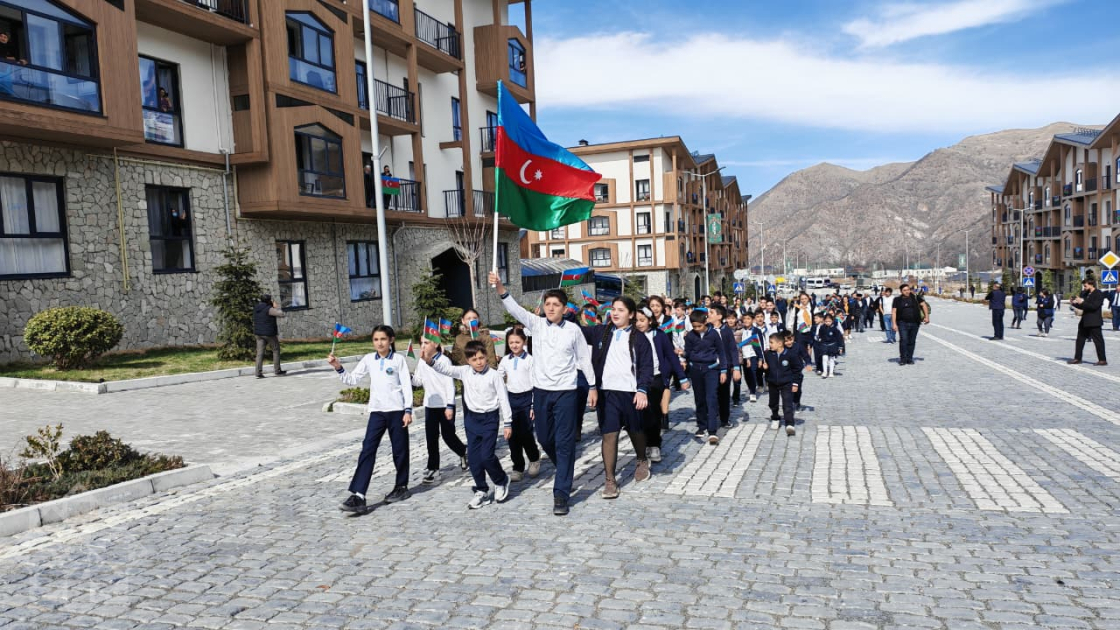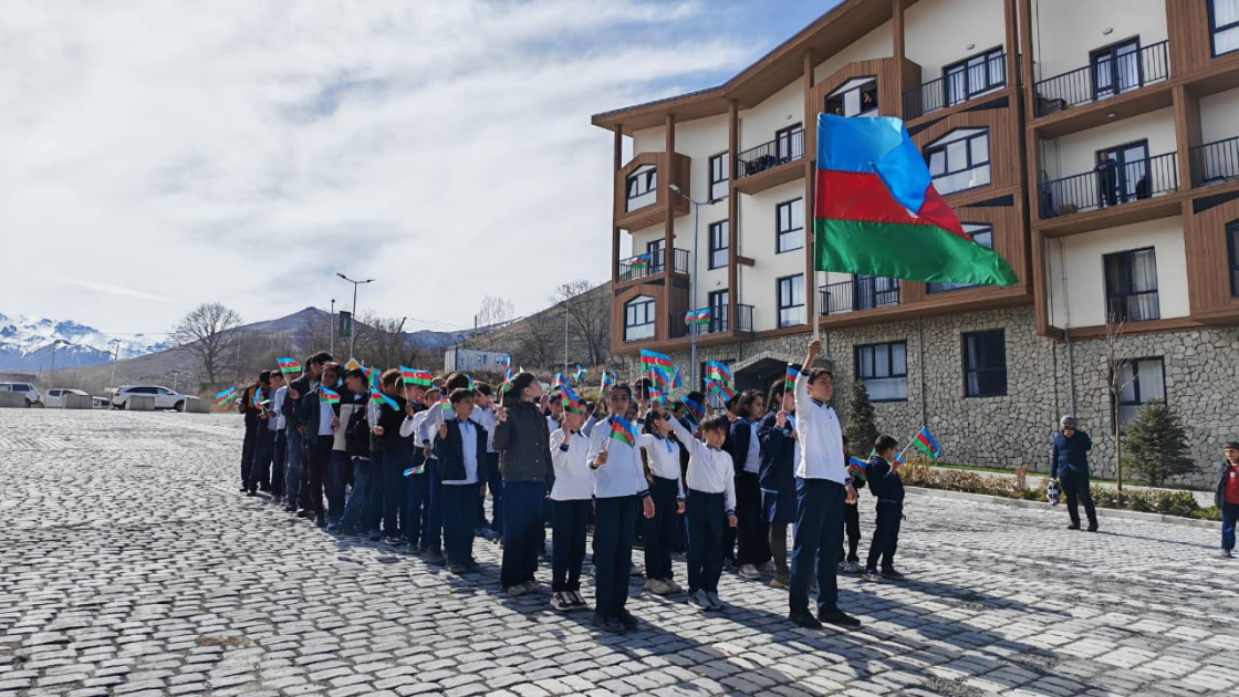 AZƏRTAC-ın bölgə müxbiri xəbər verir ki, köçlə gələn ailələri Kəlbəcər şəhərindəki I yaşayış məhəlləsində əlində bayraq tutmuş məktəblilər qarşılayıb, Dövlət Himnini ifa ediblər.