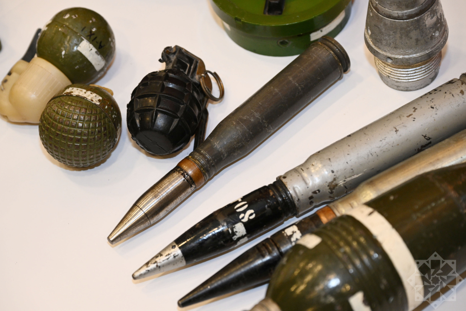 Tədbir çərçivəsində mina qurbanlarının fotoları, mina və partlamamış hərbi sursatların maketlərin, posterlərin nümayiş olunduğu sərgi təşkil edilib.