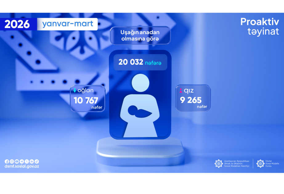 Bu ilin yanvar-mart ayları ərzində 20 min 32 nəfərə uşağın anadan olmasına görə proaktiv qaydada birdəfəlik müavinət təyin olunaraq ödəniş edilib.