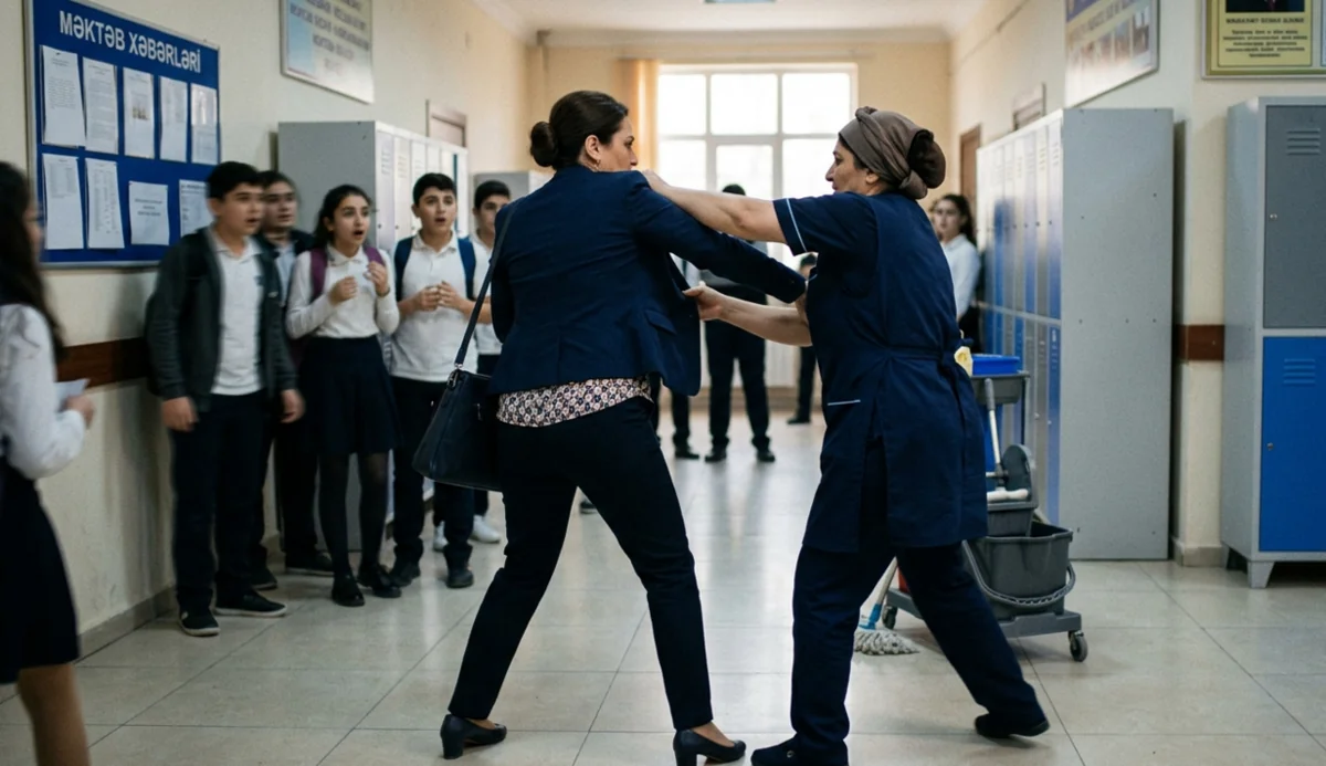 Belə ki, orta məktəbin direktoru Aliyə Əliyeva məktəbdə xadimə və qazançı işləyən Ülviyyə Abdullayevanı vəzifələrinin birindən azad edib. O bildirib ki, Ü.Abdullayeva xadimə işlədiyi üçün qazançı vəzifəsində çalışa bilməz. Məsələdən xəbər tutan Ü.Abdullayeva direktorun otağına gələrək, onu söyüb. Daha sonra xadimə ilə direktor arasında mübahisə yaranıb. Mübahisə davaya çevrilib, xadimə direktorun stolunun üstündə olan suveniri qırıb.