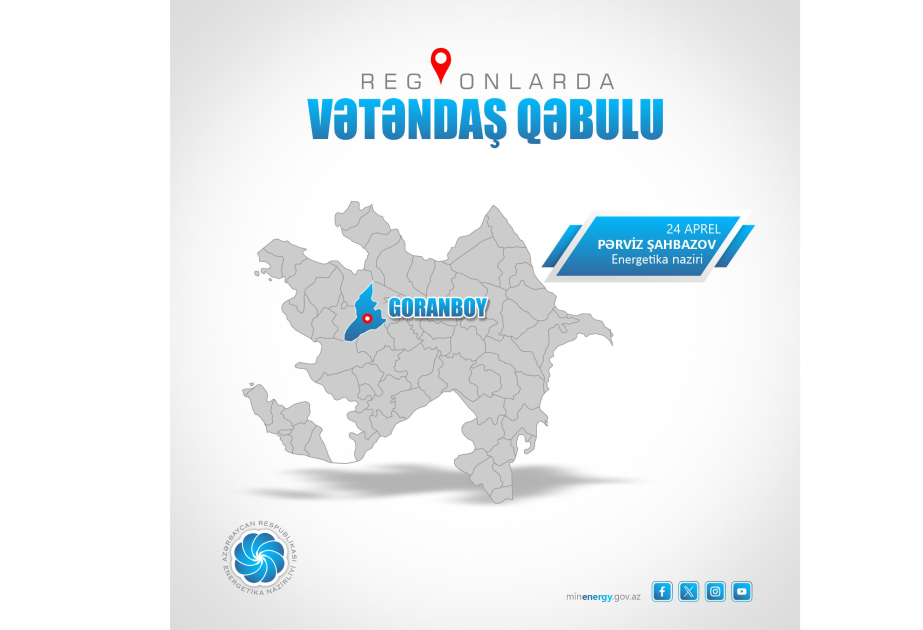 Energetika naziri Pərviz Şahbazovun aprelin 17-də Goranboyda keçiriləcək vətəndaşlarla görüşünün vaxtı dəyişdirilib.