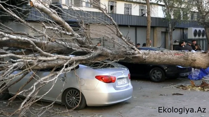 Lənkəranda ağac avtomobilin üstünə aşıb, xəsarət alanlar var.