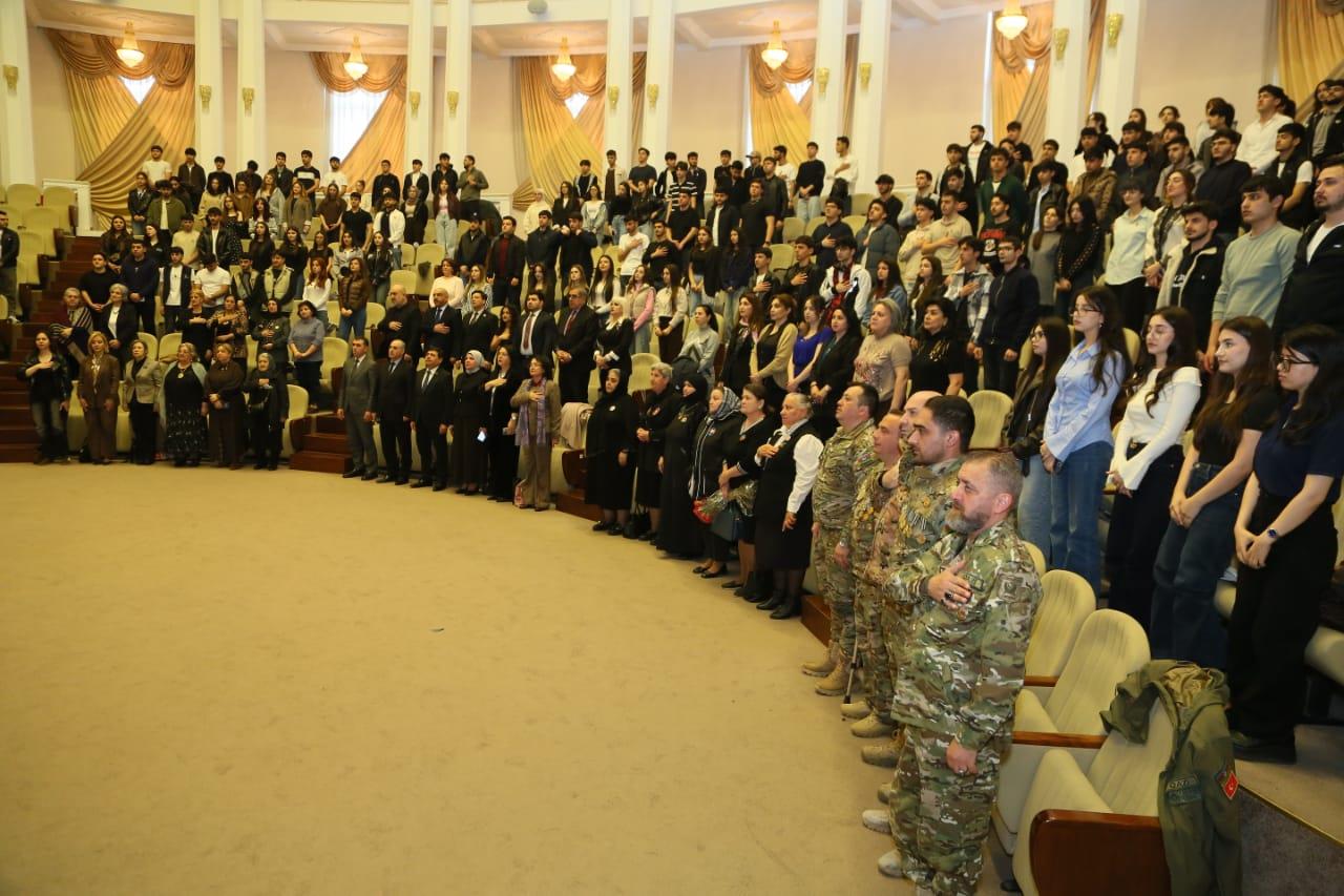 Çıxış edənlər Aprel döyüşlərində qəhrəmancasına şəhid olmuş universitetin 4 məzunu - Əbdülməcid Axundovun, Müşfiq Orucovun, Elvin Mirzəyevin, Mahir Quliyevin və onlarla bərabər şəhid olmuş igidlərimizin qəhrəmanlığının gənclərimizə bir örnək olduğunu qeyd ediblər.