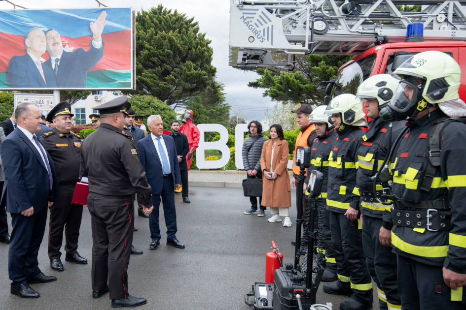 Sonda tədbir iştirakçıları universitet ərazisində fövqəladə hallar üçün nəzərdə tutulmuş xüsusi texnika və avadanlıqla tanış olub, FHN əməkdaşları tərəfindən onların təyinatı, istifadə qaydaları barədə məlumatlandırılıblar.