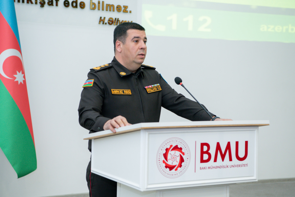 Bakı Mühəndislik Universitetində (BMU) Fövqəladə Hallar Nazirliyi (FHN) Sumqayıt Regional Mərkəzi ilə birlikdə “Fövqəladə hadisələrin qarşısının alınması və nəticələrinin aradan qaldırılmasında gənclərin rolu” mövzusunda tədbir keçirilib.