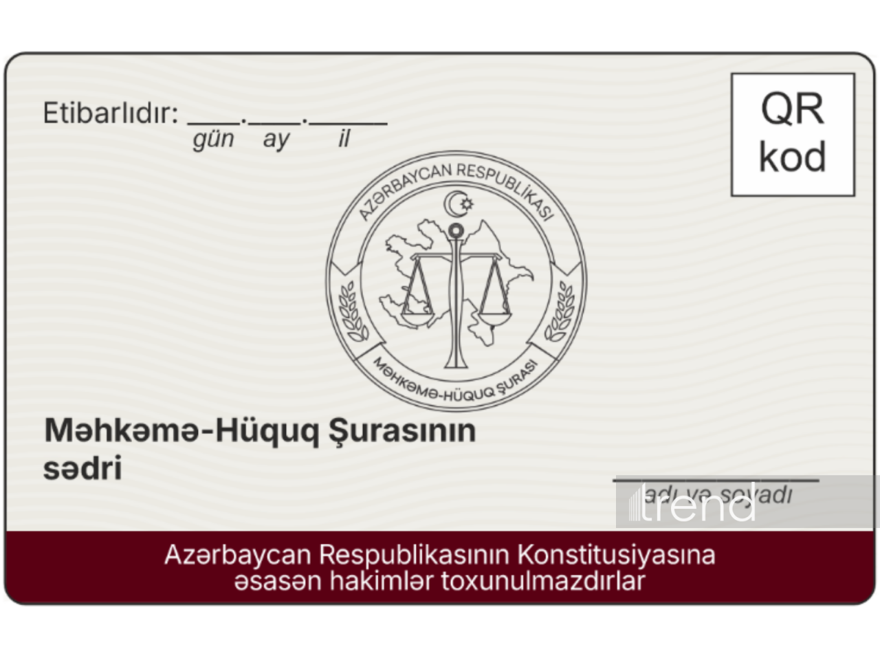 Belə ki, bundan sonra hakimlərin xidməti vəsiqəsi aşağıdakı kimi olacaq: