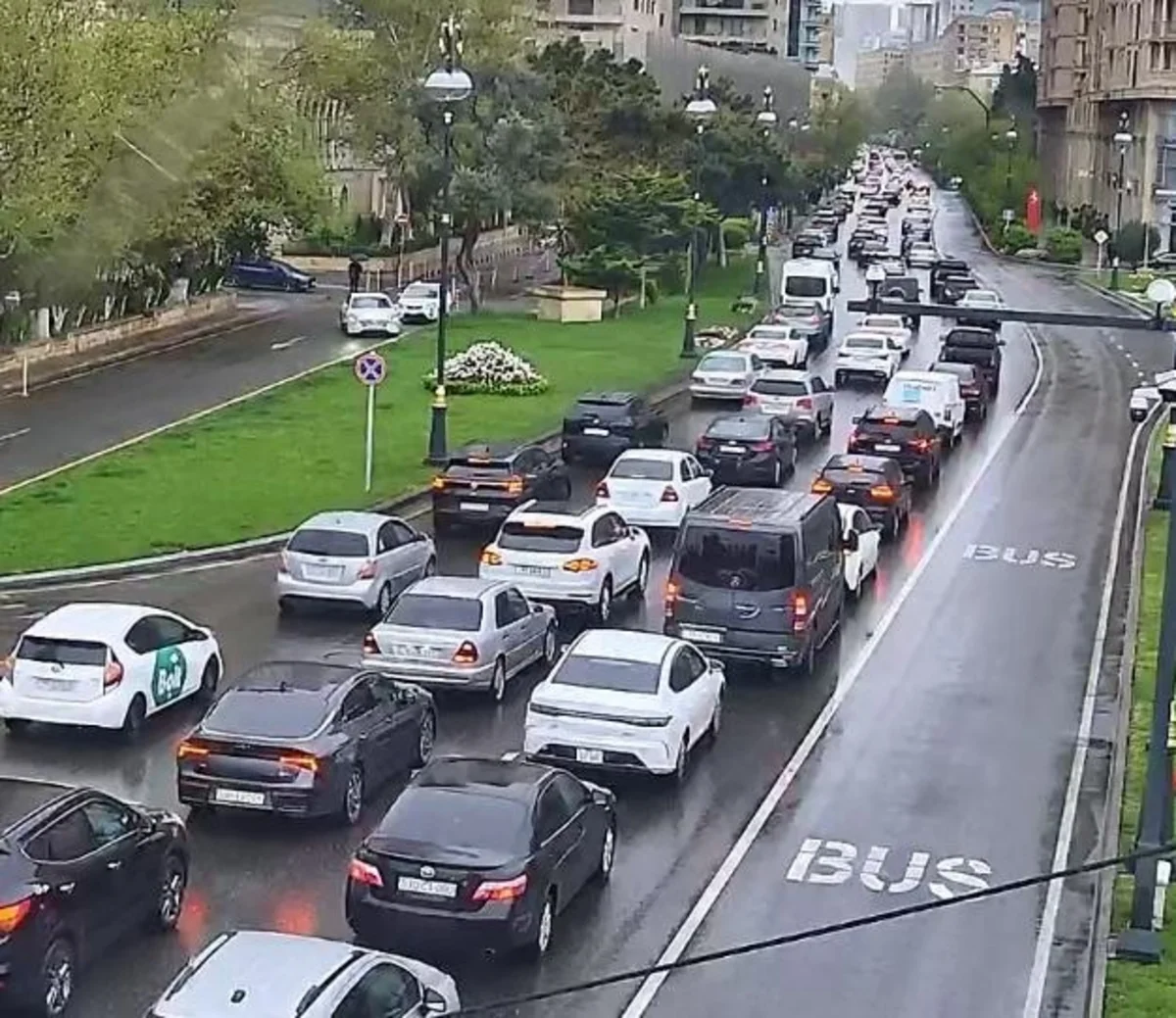 Bakının bir sıra yollarında tıxac yaranıb.