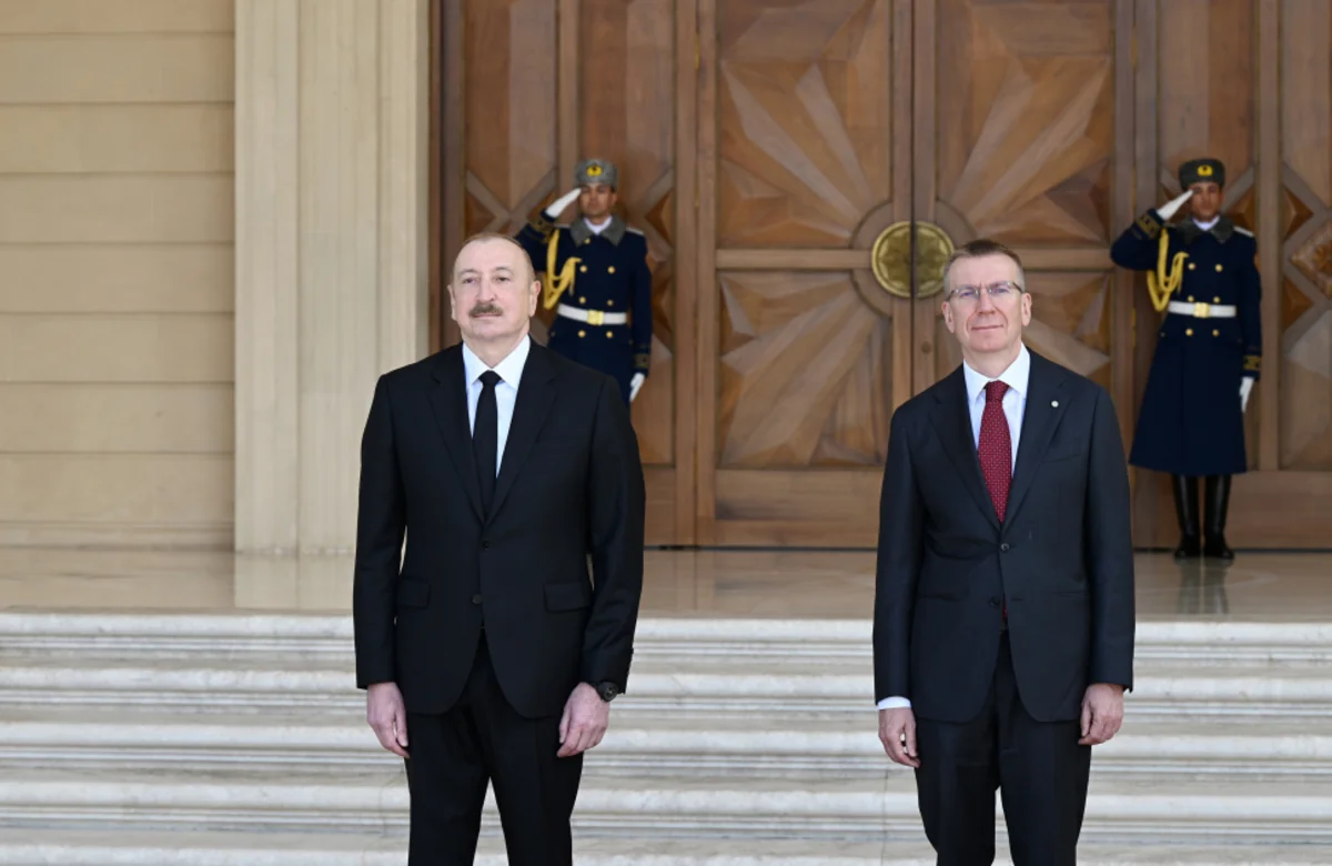 "Prezident İlham Əliyev Azərbaycanda rəsmi səfərdə olan Latviya Prezidenti Edqars Rinkeviçs ilə görüşüb".