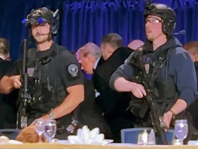 CNN müxbiri Volf Blitzer Ağ Ev müxbirinin şam yeməyinin əsas bal zalının yaxınlığında atəş səsləri eşidiləndə silahlı şəxsdən cimı bir neçə fut (İngilis ölçü sistemində 30 sm 48 mm-ə bərabər uzunluq vahidi *red.)aralıda olub.