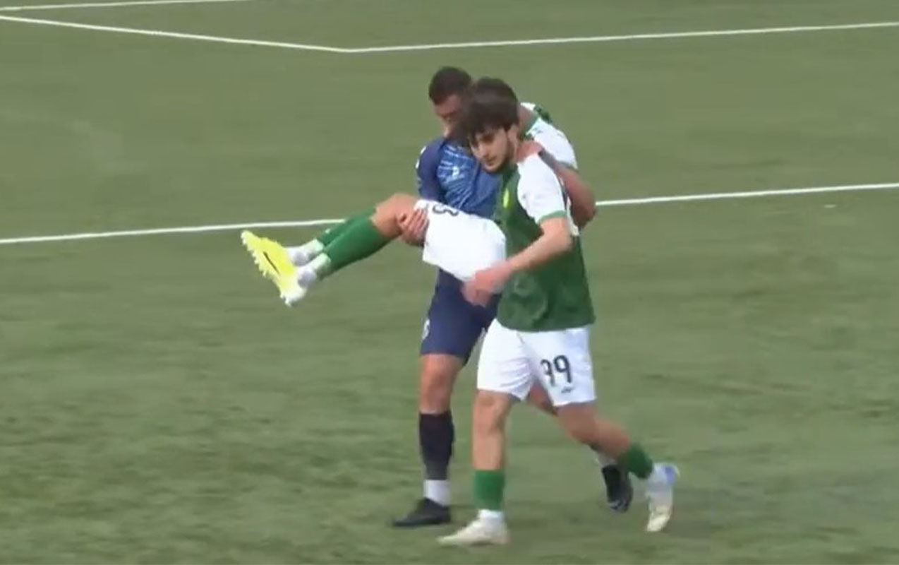 O, oyuna davam edə bilməyib. Hərəkət etməkdə çətinlik çəkən O.Təhməzlini “Mingəçevir”in kapitanı Kənan Quliyev qucağında meydandan çıxarıb.