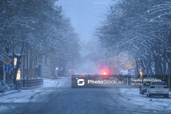 В результате снегопада, который продолжается с вечера 13 января, территория столицы Азербайджана окутана белой пеленой.