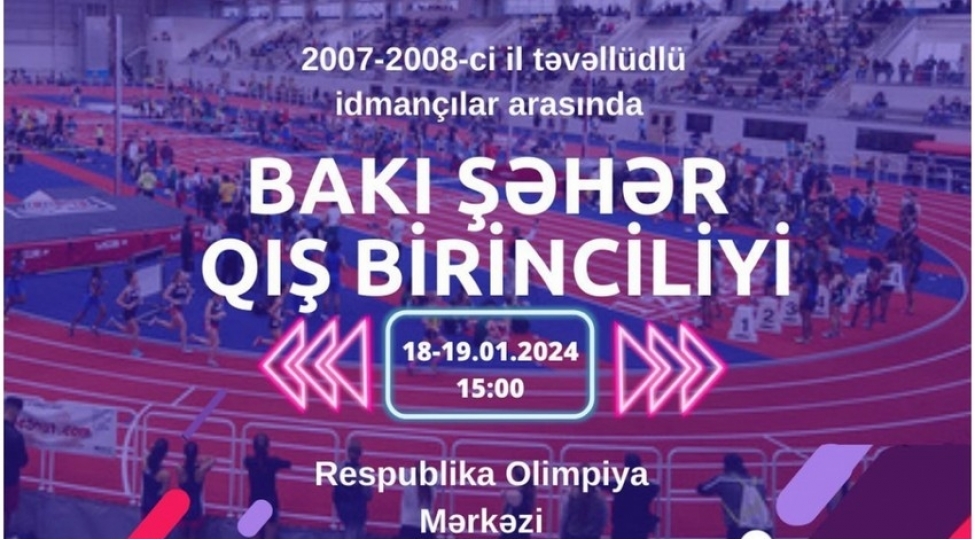 Respublika Olimpiya Mərkəzində 2007-2008 təvəllüdlü idmançılar arasında atletika üzrə Bakı şəhər qış birinciliyi keçiriləcək.