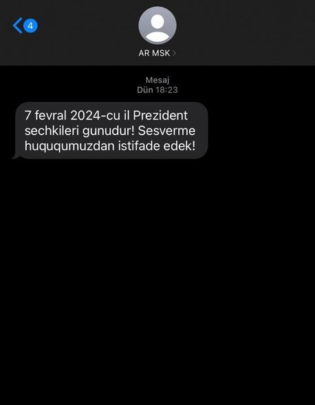Как сообщает Oxu.Az, в рамках совместного проекта ЦИК и Министерства цифрового развития и транспорта для информирования избирателей при посредничестве мобильных операторов с 23 января начата отправка гражданам уведомлений об использовании своего права голоса.