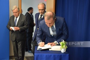 "Report"un ABŞ bürosu xəbər verir ki, nazir öncə BMT-nin xatirə dəftərinə ürək sözlərini yazıb. A.Quttereş və C.Bayramov diplomatlar görüşdən öncə xatirə fotosu çəkdiriblər.