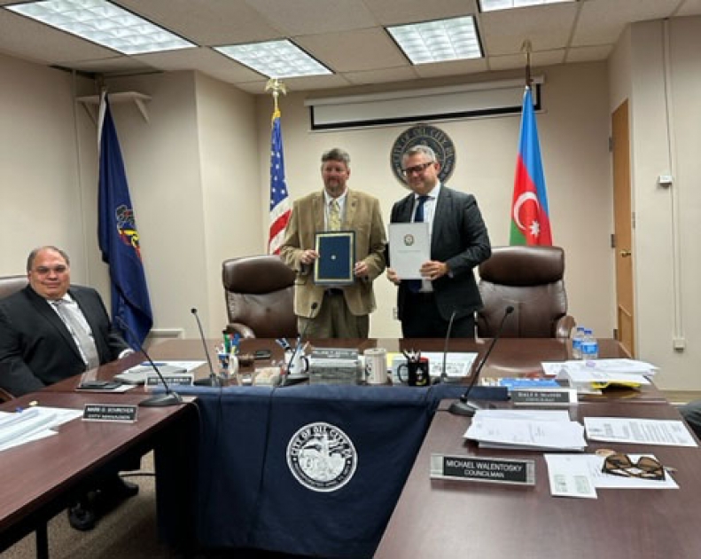 Azərbaycanın Səbail rayonu ilə ABŞ-ın Pensilvaniya ştatının Oyl Siti şəhəri arasında “Qardaşlaşmış Şəhərlər haqqında Protokol” imzalanıb.