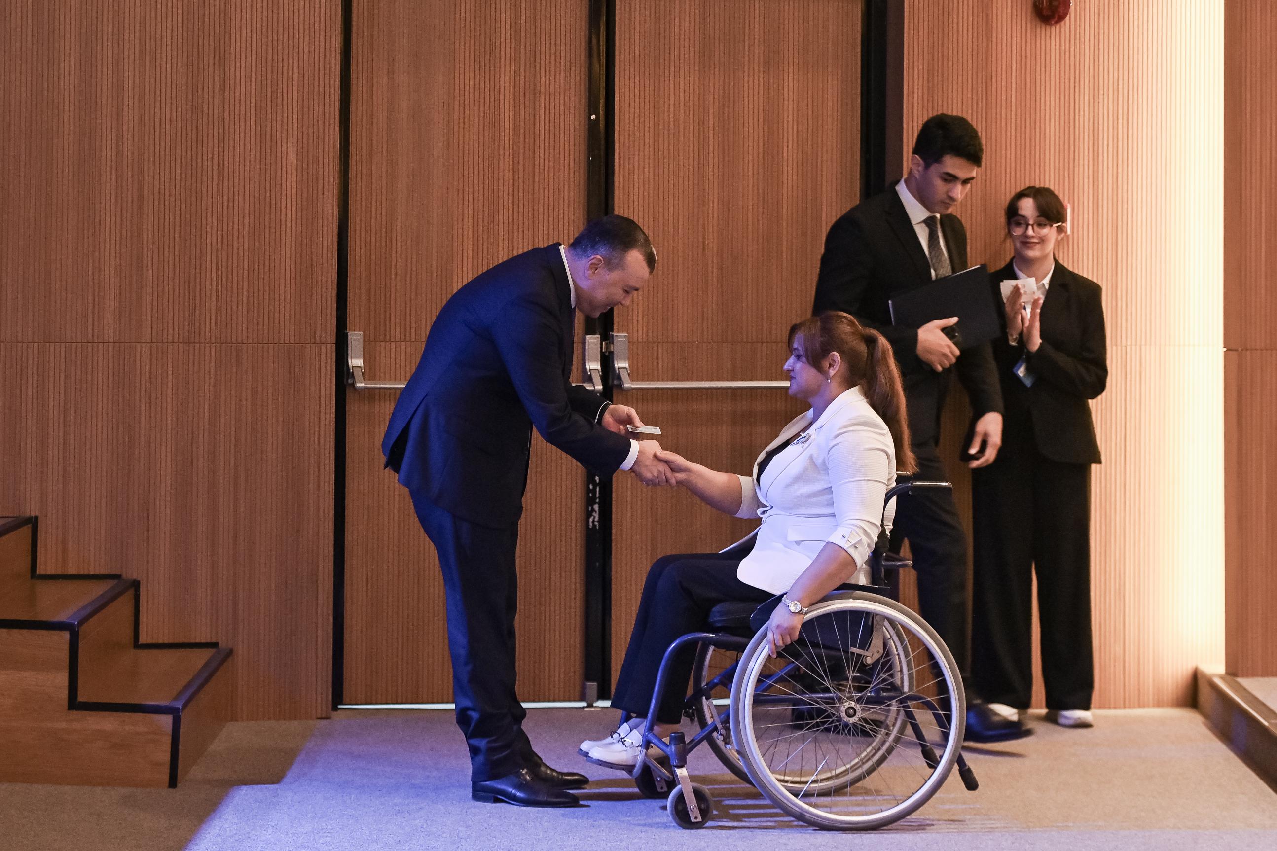 Moderator.az xəbər verir ki, DOST İnklüziv İnkişaf və Yaradıcılıq Mərkəzində təşkil olunan tədbirdə əmək və əhalinin sosial müdafiəsi naziri Sahil Babayev, YAP Sədrinin müavini-Mərkəzi Aparatın rəhbəri Tahir Budaqov, Nəsimi Rayon İcra Hakimiyyətinin başçısı Asif Əsgərov, Yasamal Rayon İcra Hakimiyyəti başçısının müavini Təravət Muradova, YAP Yasamal rayon təşkilatının sədri Bəxtiyar Nəbiyev, YAP Nəsimi rayon təşkilatının sədri Azər Süleymanov iştirak ediblər.