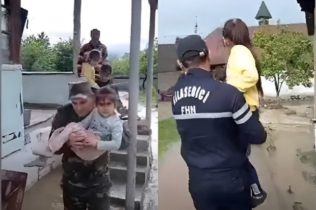 В Габале спасены двое детей, оказавшихся в беспомощном положении во время наводнения - ВИДЕО