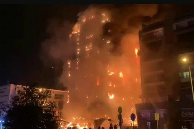 Yanğın qısa müddətdə bütün binanı bürüyüb.