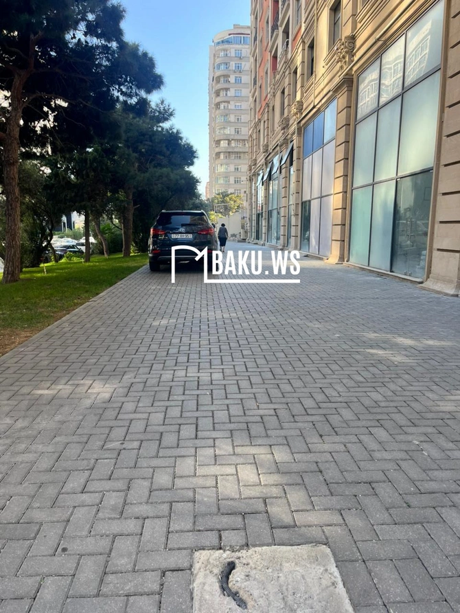 İddialara görə, binanın qarşısında yerləşən obyektlərdən biri səki hissəsini qanunsuz şəkildə avtomobil parkinqinə çevirib.