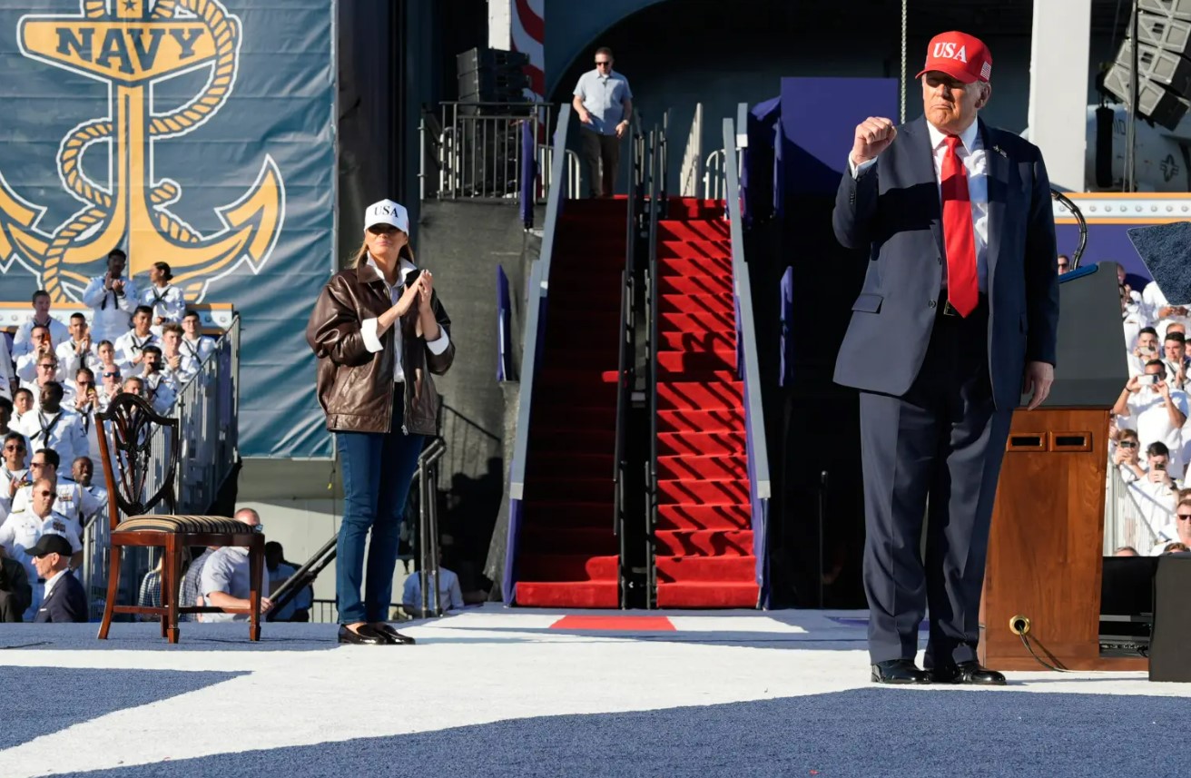 Donald Tramp və həyat yoldaşı Virciniya ştatının Norfolk şəhərində ABŞ Hərbi Dəniz Qüvvələrinin 250 illiyinin qeyd olunduğu qala tədbirinə qatılıb.