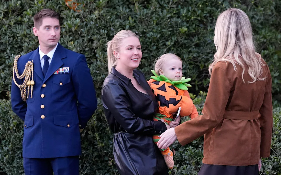 Qonaqlar arasında Ağ Evin mətbuat katibi Kerolin Levitt balqabaq əri və oğlu ilə, müşaviri Stiven Miller ailəsi ilə birlikdə skelet geyimində və digər administrasiya işçiləri var idi.