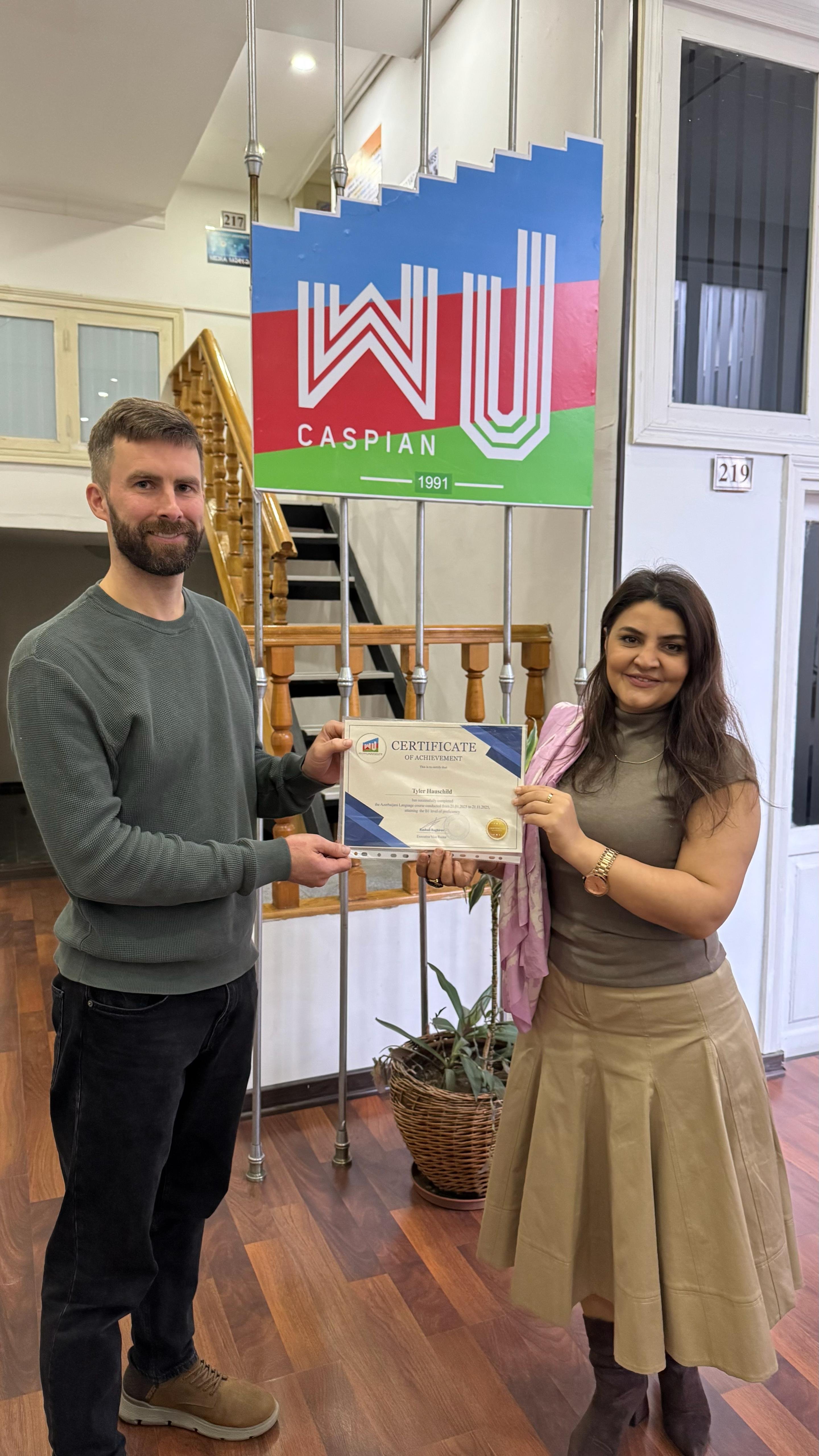 Qərbi Kaspi Universiteti beynəlxalq tələbələr üçün bərabər imkanlar yaradaraq, onların dil bacarıqlarının inkişafına və mədəni inteqrasiyasına xüsusi önəm verir.