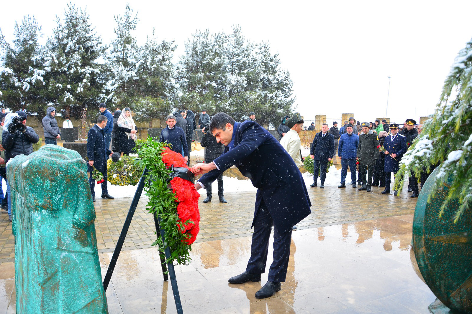 Şəhidlərimizin ruhuna dualar oxunub, RİH başçısı Şəhidlər Xiyabanının “Əbədi məşəl” abidəsi önünə əklil qoyub, şəhidlərimizin məzarları üstə tər qərənfillər düzülüb.