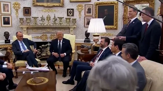 Oxu.Az xəbər verir ki, hadisə Almaniya Kanslerinin ABŞ Prezidenti Donald Trampla Ağ Evdə görüşü zamanı baş verib.