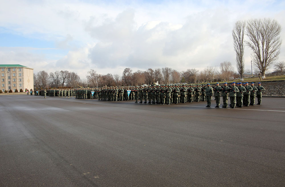 Sonra kurs birincisi tərəfindən yaş kötüyünə rəmzi emblem vurulub. Buraxılış mərasiminin sonunda şəxsi heyət təntənəli marşın sədaları altında tribunanın önündən keçib.
