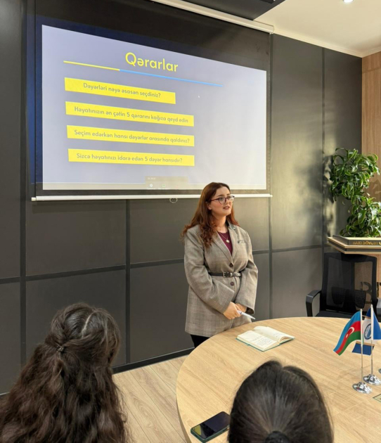 Təlimin sonunda tələbələrə karyera planlaşdırılması, şəxsi inkişaf strategiyalarının qurulması, motivasiyanın artırılması və peşə seçimi ilə bağlı faydalı tövsiyələr verilib.