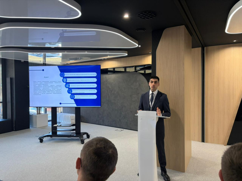 Kibertəlimlərin nəticələrinə həsr olunmuş tədbirdə XRİTDX-nin şöbə rəisi Fəxri Cəfərov xidmətin fəaliyyəti və kibertəhlükəsizlik sahəsində görülən işlər barədə təqdimatla çıxış edib.