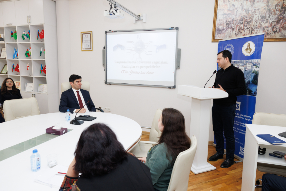 AMEA-nın Nizami Gəncəvi adına Ədəbiyyat İnstitutunda Elm Gününə həsr olunmuş “Rəqəmsallaşma dövrünün çağırışları: reallıqlar və perspektivlər” adlı tədbir keçirilib.