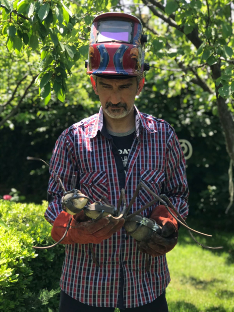 - Metal qırıntılarının yığılması məntəqələrində. Bəzən insanlar məni qaynaqçı ilə səhv salırlar. Onlar soruşurlar: “Sən kimsən?” Cavab verirəm: “Həkiməm”. Bundan təəccüblənirlər. Sonra isə onlara hazır işi gətirirəm və bunun necə baş verdiyini başa düşə bilmirlər. Bu, onlar üçün sehrdir, amma mənim nəzərimdə sadəcə adi bir işdir. Material axtarışı prosesindən zövq alıram, sanki potensial sənət əsərlərini axtarıram. Seçdiyim hər metal parçası artıq mənə yeni bir əşyanın bir hissəsi ola biləcəyini “pıçıldayır”.