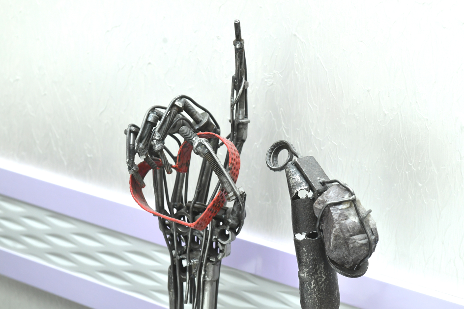 Onun iş masasında bir çox insan üçün artıq əhəmiyyətini itirmiş detallar – boltlar, yaylar və köhnə mexanizmlərin hissələri var. Ustanın əlləri onlara yeni həyat bəxş edir. Qarşımızda metal əl var, onun mərkəzində parlayan ürək diqqəti cəlb edir.