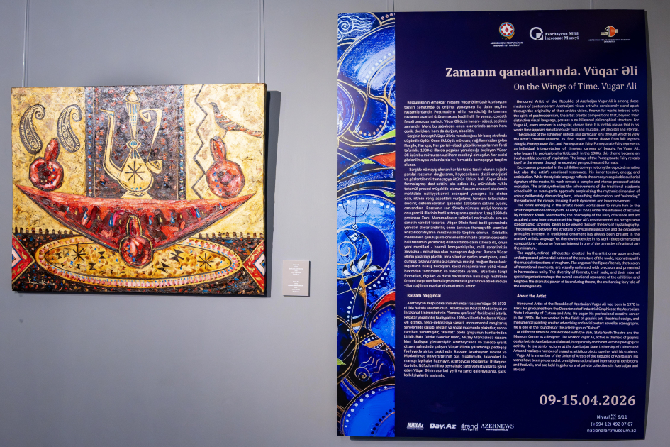Azərbaycan Milli İncəsənət Muzeyində müasir təsviri sənətin tanınmış nümayəndəsi, Əməkdar rəssam Vüqar Əlinin əsərlərindən ibarət “Zamanın qanadlarında. Vüqar Əli” adlı sərgi açılıb və eyniadlı kitabın təqdimatı keçirilib.