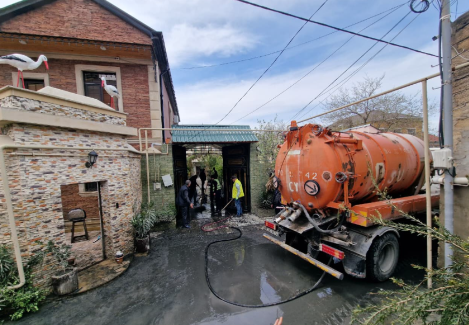 Keşlədə kollektorun daşması nəticəsində yaranmış fəsadlar aradan qaldırılır Fotolar
