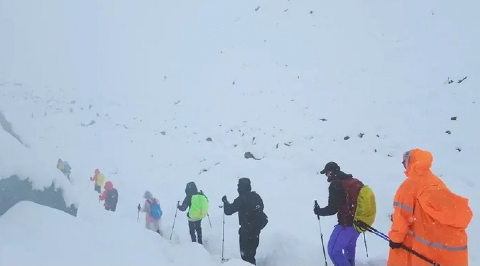 Donmuş şəlalə turistlərin üzərinə töküldü