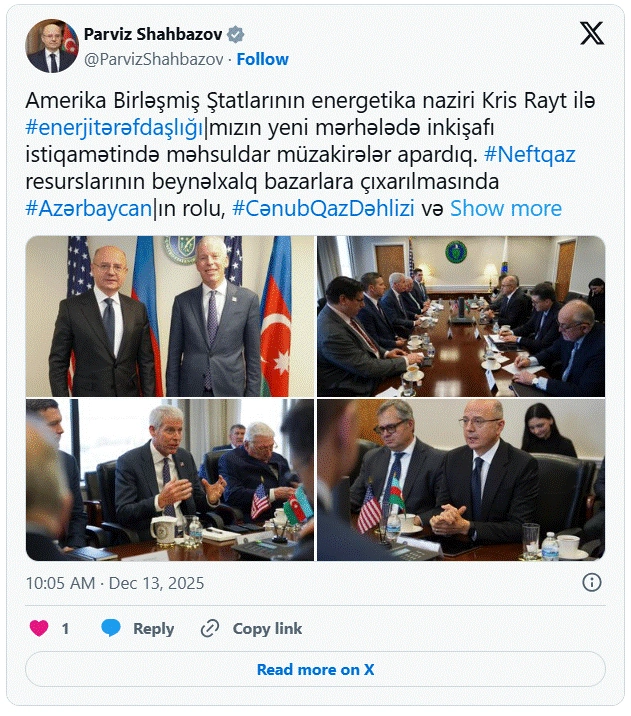 ABŞ də Azərbaycanın neft və qaz resurslarının beynəlxalq bazarlara çıxarılmasındakı rolu qiymətləndirilib