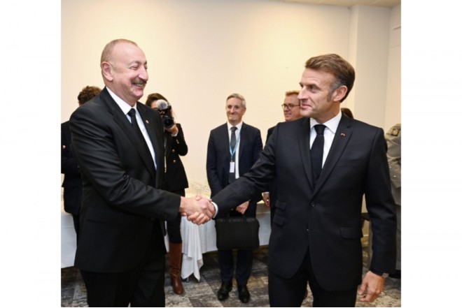 Prezident İlham Əliyev Kopenhagendə Emmanuel Makronla görüşüb