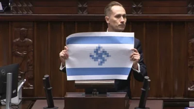 Polşa parlamentində QALMAQAL: Deputat İsrail bayrağını svastika ilə TƏHQİR ETDİ – VİDEO