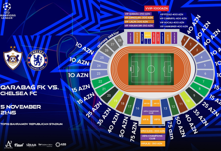 “Qarabağ” – “Çelsi” matçının biletləri sabah satışa çıxarılacaq