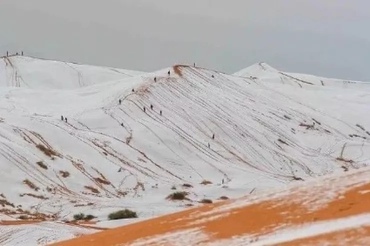 Sahara səhrasına 40 ildə yeddinci dəfə qar yağdı - FOTO