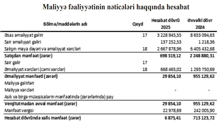“Bakı-Əyrici-Toxucu” şirkətinin xalis mənfəəti 100 dəfədən çox azalıb