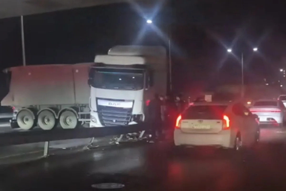 Bakı-Sumqayıt yolunda yük maşını arakəsməyə çırpıldı - VİDEO