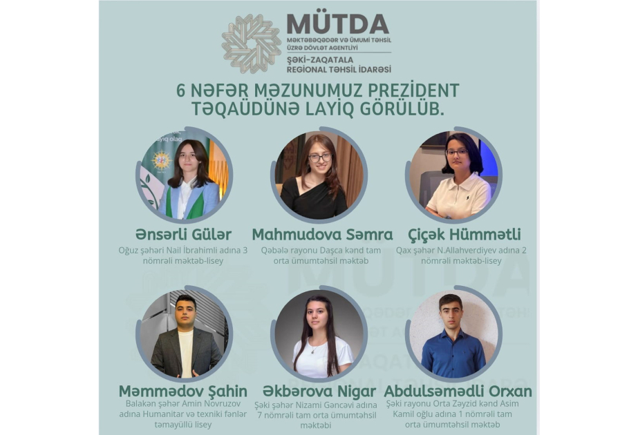 Şəki-Zaqatala bölgəsindən 6 məzun Prezident təqaüdünə layiq görülüb