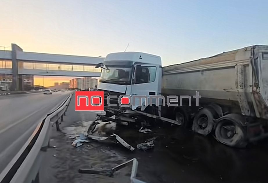Bakı-Sumqayıt yolunda yük maşını qəza törətdi- VİDEO