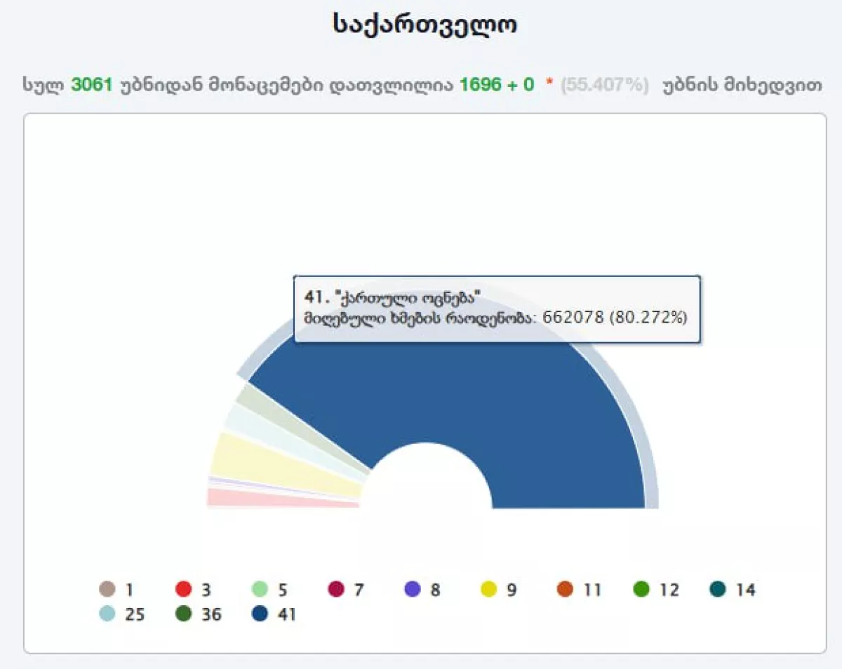 ЦИК Грузии: Правящая партия набирает более 80 процентов голосов