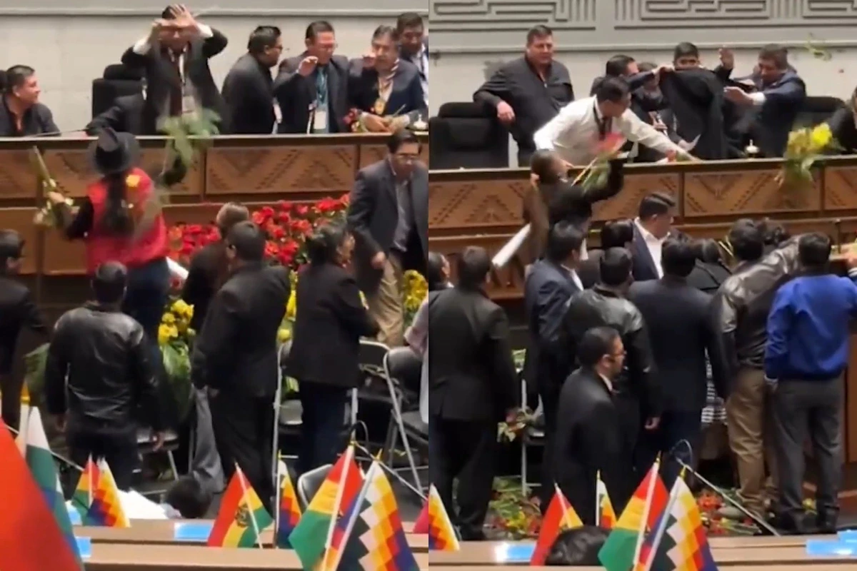 Evo Moralesi dəstəkləyən Sosializmə Doğru Hərəkat Partiyasından bir qrup millət vəkili vitse-prezidentə pomidor ataraq onun parlament tribunasında çıxışının qarşısını almağa çalışıb. Bu səbəbdən David Çokeuanka çıxış edə bilməyib və parlamenti tərk etməli olub. Bu zaman Moralesin tərəfdarları ilə hakim partiyanın deputatları arasında dava düşüb.